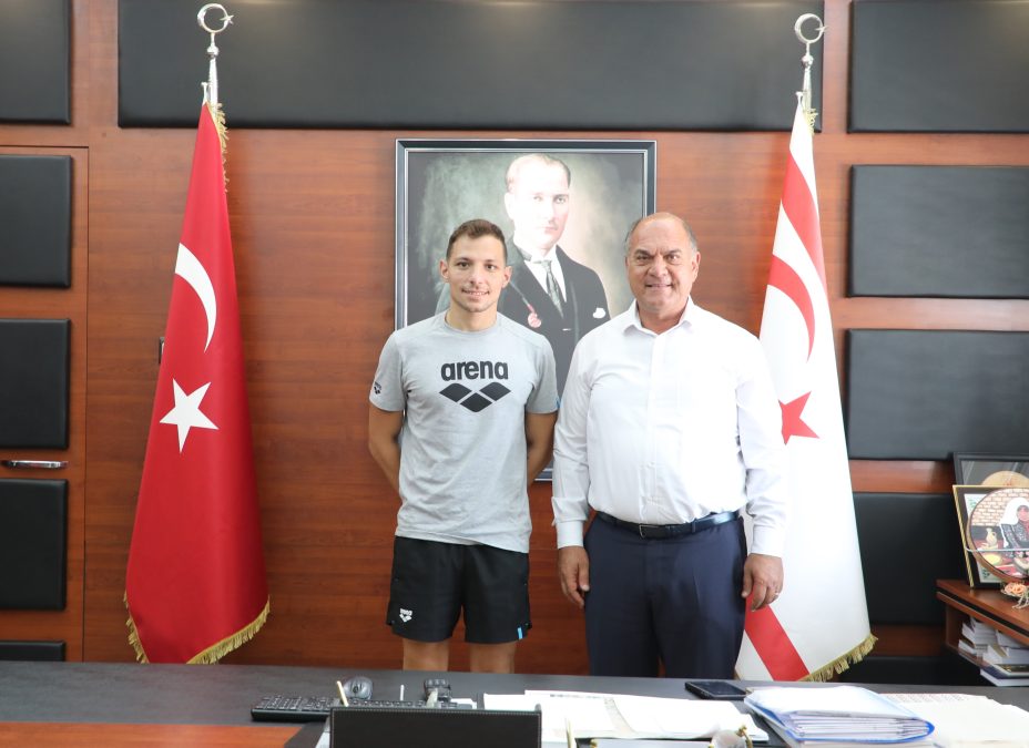 Değirmenlik Akıncılar Belediyesi Başkanı Ali Karavezirler, Kıbrıslı Türk yüzücü Doğukan Ulaç’ı kabul etti.